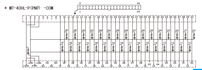 | MT-40HL-P | 32Point | PNP -com | HIF3BA-40PA-2.54DSA | HIF3BA-40D-2.54DSA | 152.3*49.5 | 导轨固定 |