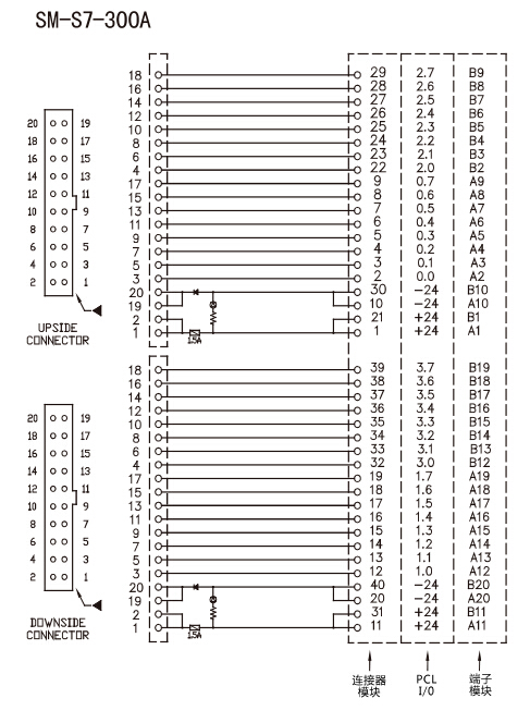 | SM-S7-300A | 32Point | 40 | MlL Stanfard | HIF3BA-20PA-2.54DSA*2 | 电源表示LED,电源侧Diode | Digital I/O专用 |